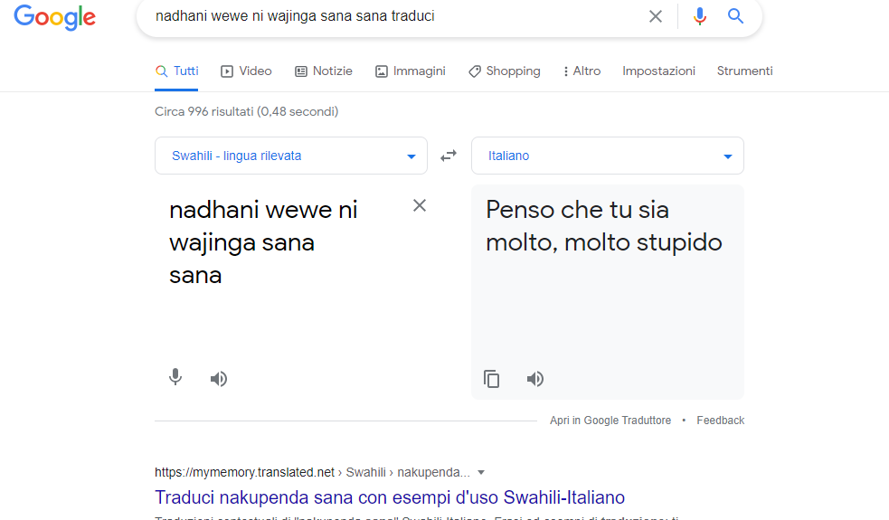 Qui qualcuno direbbe: nadhani wewe ni wajinga sana sana.