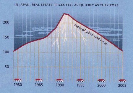...Tutto questo ha incoraggiato le imprese e i privati a indebitarsi molto al di là del ragionevole, creando così una duplice bolla finanziaria e immobiliare. Erano i tempi in cui il Giappone dava l'impressione di potersi comprare il mondo intero.