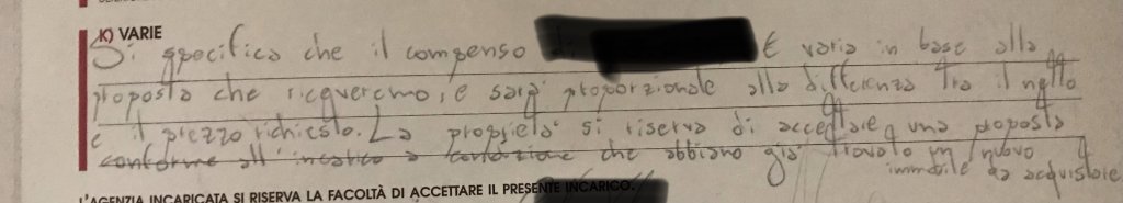 Sul compenso funziona così se il netto è 80k e l’acquirente offre 100k allora la differenza di 20k spetta a loro. Se l’acquirente offre 95k a loro toccano15k è così via. Il problema si verifica quando l’acquirente offre 80k. In quel caso viene detto al cliente che l’immobile ha bisogno di un ribasso del prezzo e ti presentano un aggiornamento da firmare sempre con le stesse condizioni ovvero: netto al cliente 70K prezzo in pubblicità 80K. Ovvio che al secondo ribasso mi sono un po’ insospettito…